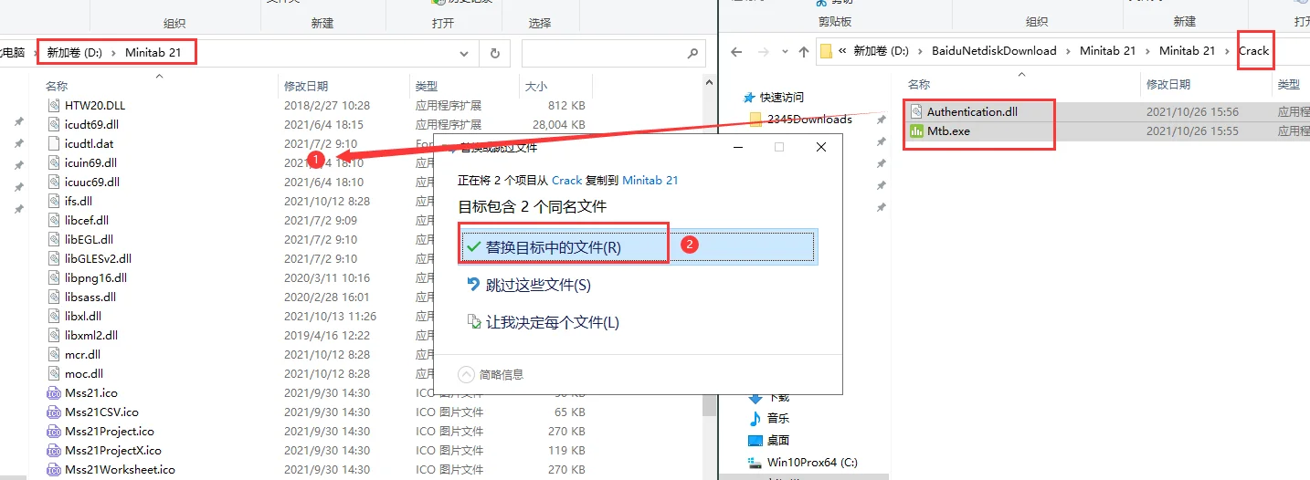 15.将【Crack补丁】文件夹里面的破解文件【Authentication.dll】和【Mtb.exe】复制到软件安装目录下替换成功