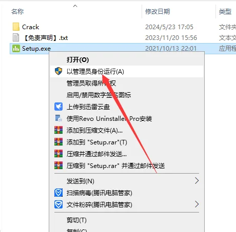 2.选择【Setup.exe】鼠标右键以管理员身份运行