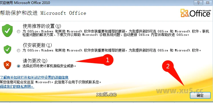 打开office产品,选中请勿更改,点击确定