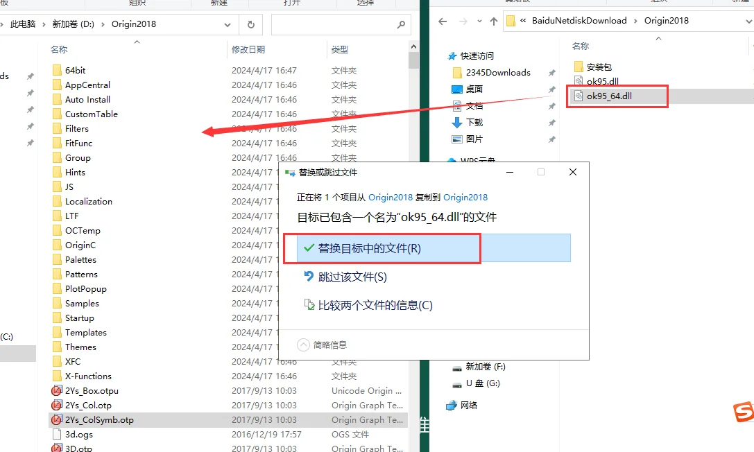 18.将【补丁】文件夹中破解补丁【ok95_64.dll】复制到安装目录下替换(64位使用ok95_64.dll,32位使用ok95.dll)。