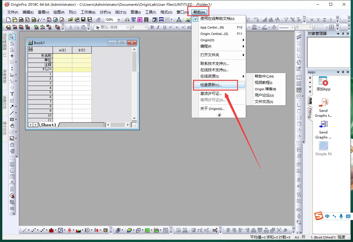 20.点击【帮助】->【检查更新】开始激活。