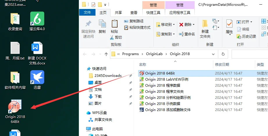 16. 将Origin 2018 64Bit快捷方式复制到桌面,生成图标。