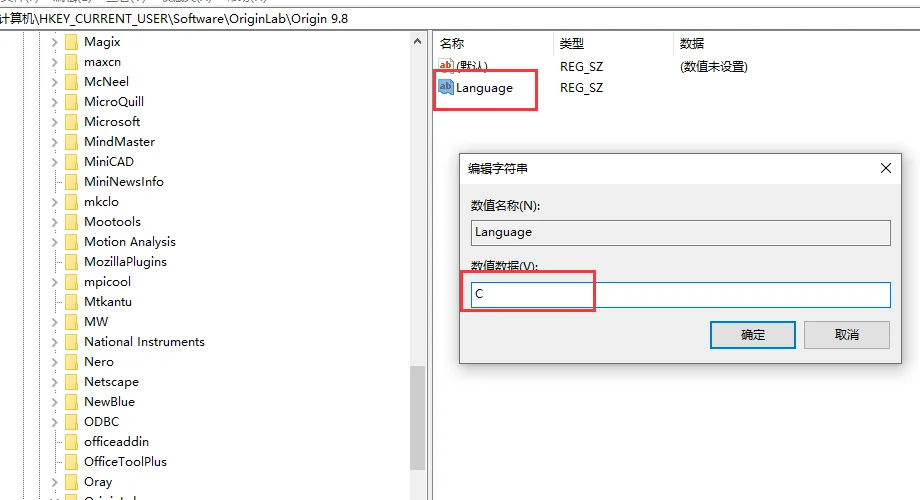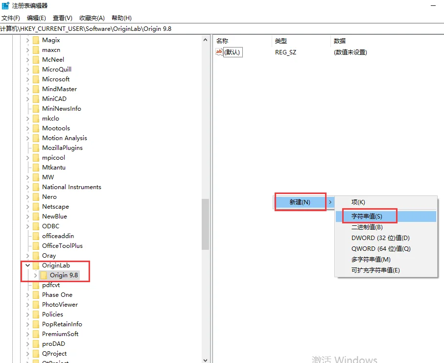 定位到注册表路径,进入 HKEY_CURRENT_USERSoftwareOriginLabOrigin 9.8。