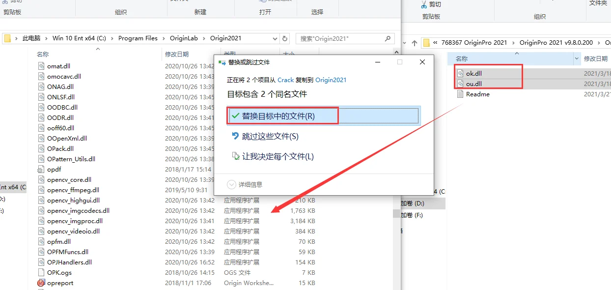 将【Crack】文件夹破解补丁【ok.dll】和【ou.dll】文件复制到软件安装目录进行替换。