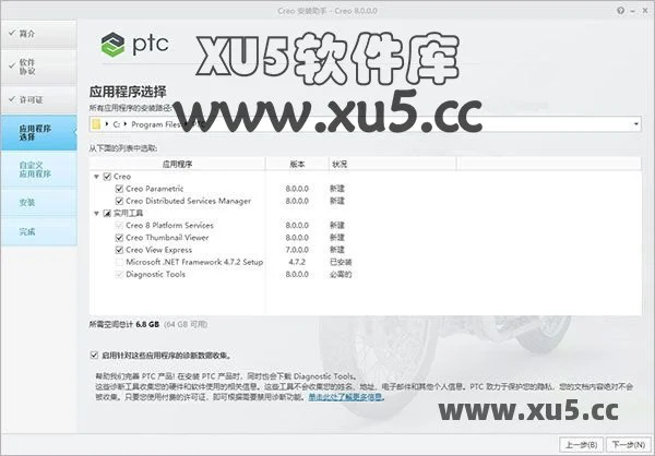 根据需要选择要安装的程序以及安装目录,开始进行安装。