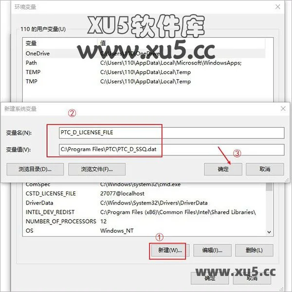 变量值:指向 PTC_D_SSQ.dat 【如:C:Program FilesPTCPTC_D_SSQ.dat】就是刚刚生成的文件