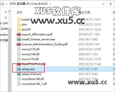解压【PTC.Creo.8.0.0.0.Win64】,右键管理员运行其中的setup