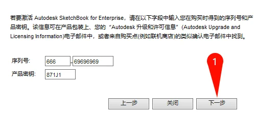 输入序列号666-69696969,产品密钥871J1,点击下一步