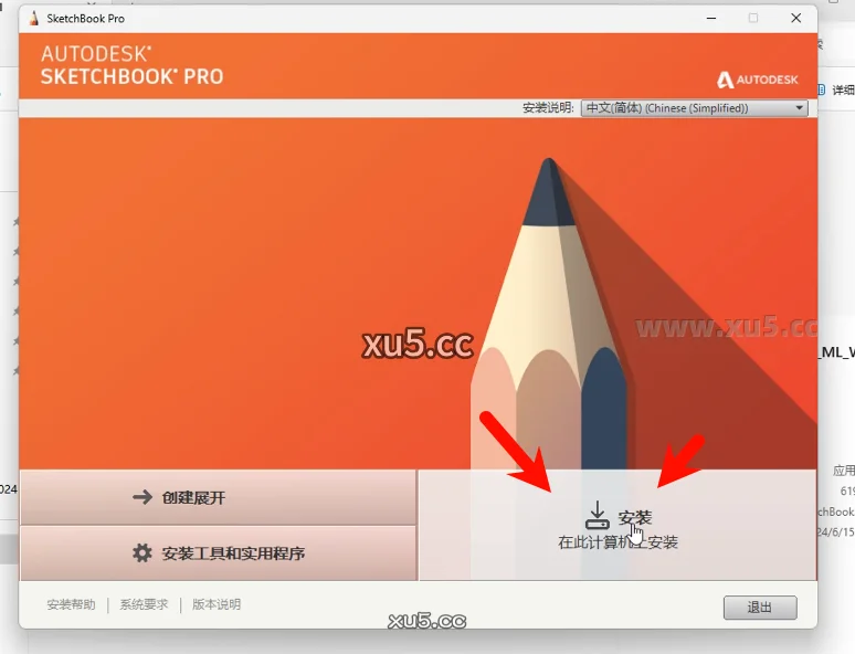 右键管理员运行安装文件SketchBookPro_2021_ML_Win_64bit_dlm.sfx