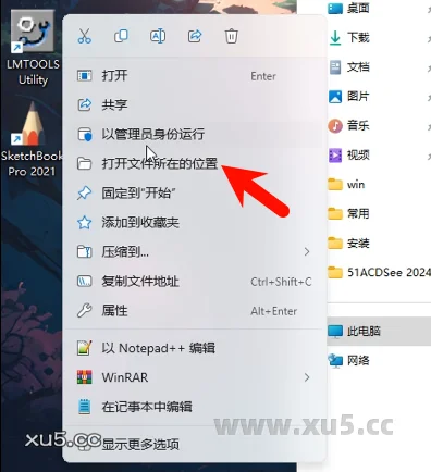 右键桌面SketchBook图标打开文件所在位置,也就是安装目录