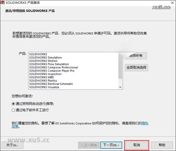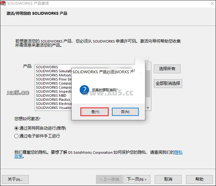 提示激活,点击取消