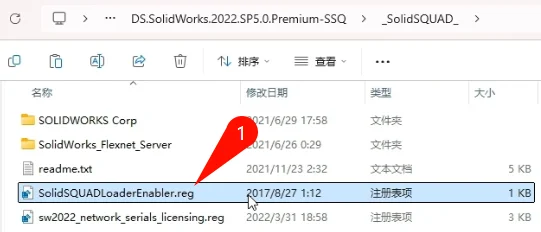 打开【_SolidSQUAD_】文件夹,运行其中的sw2022_network_serials_licensing.reg注册表
