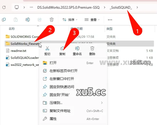 下载安装包并且解压缩后,打开打开【_SolidSQUAD_】文件夹,将【SolidWorks_Flexnet_Server】文件夹复制到C盘根目录