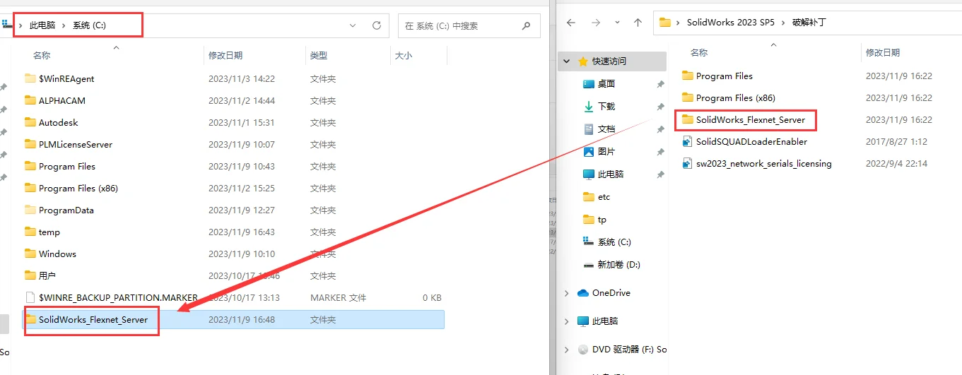 将【_SolidSQUAD_】文件夹中SolidWorks_Flexnet_Server 复制到 C 盘下