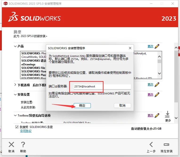 无法连接到 SOLIDWORKS 服务器以确定您已授权安装哪些产品。点击取消。