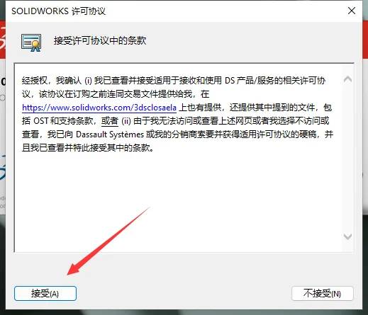 许可协议接受,点击接受。