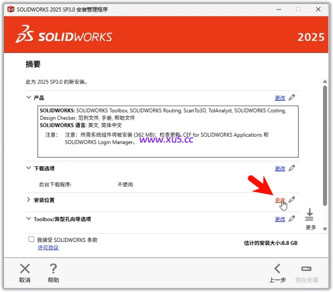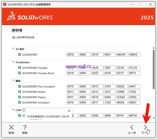 12勾选产品,大部分只需要SolidWorks,不用全部勾选,语言这里确定勾选了简体中文。