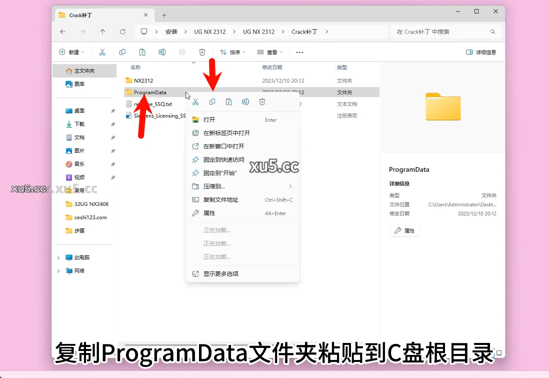 运行完成,复制【ProgramData】文件夹到C盘根目录