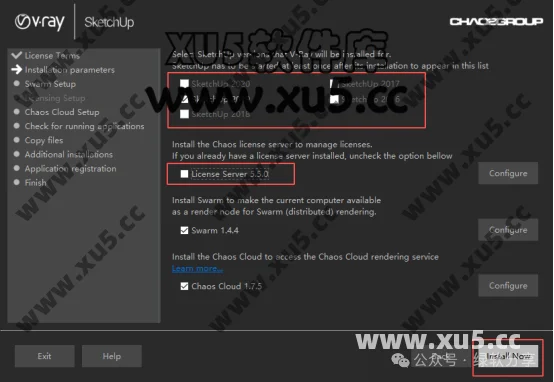 4.选择对应的Sketchup版本,取消“license 5.5.0”的勾选,后点击“Install Now”