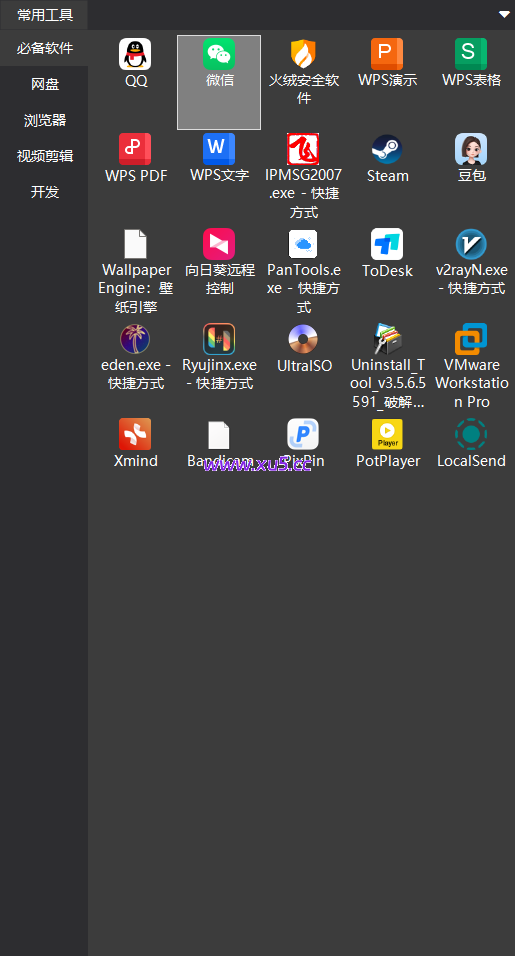 功能如下,支持创建不同分类/开机启动/收缩到顶部或者侧边